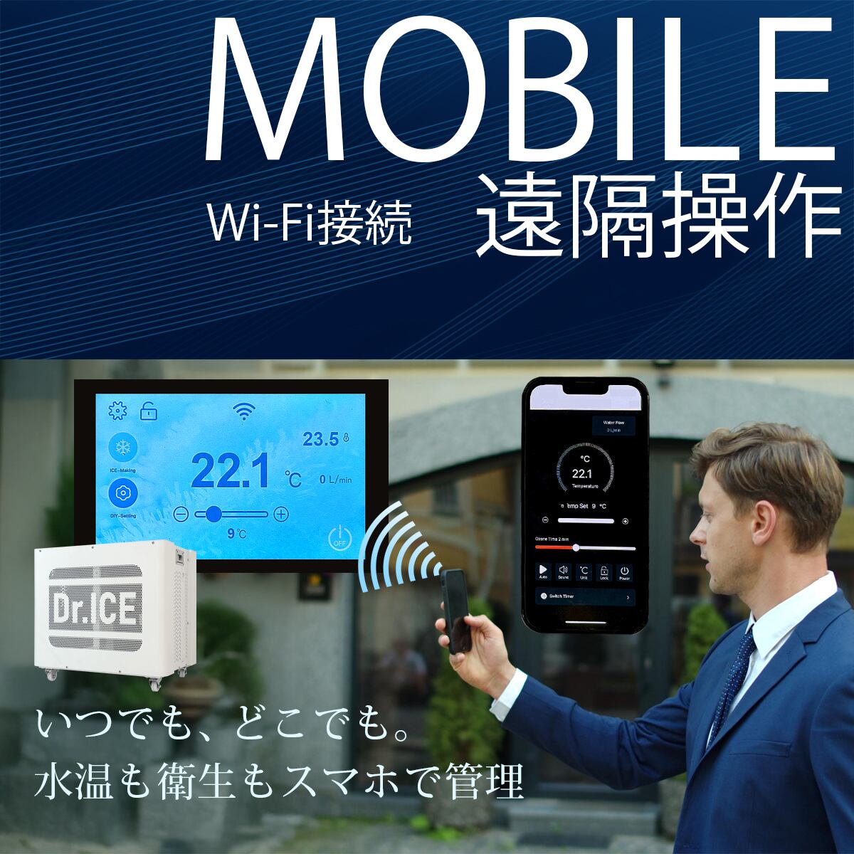 【Wi-Fi遠隔操作でスマート運用】専用アプリ(iOS/Android対応)を使えば、どこからでも電源ON/OFF、温度設定、運転予約が可能。ジムの営業開始前や帰宅時間に合わせて予冷・予熱しておくなど、時間と電気を無駄にしない効率的な施設・自宅運用を実現します。